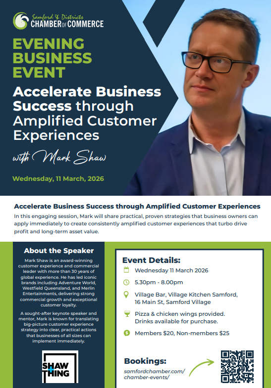 Village Kitchen Samford, Wednesday evening the 11th March from 5.30pm. We look forward to seeing you there for a great night of networking with your fellow Samford and Districts business owners.